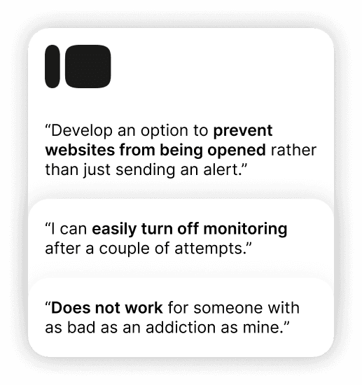 Even with the monitoring and accountability partners, users felt unsupported during critical moments. Delayed partner responses and limited tools left them vulnerable to relapses.